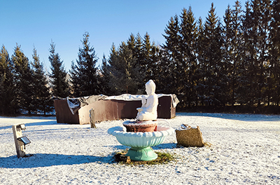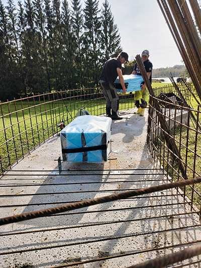 | pjedestals gatavs (uz ziemu apklāts ar finieri un plēvi) |